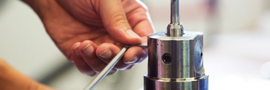 Der Mitarbeiter rüstet die Maschine mit den optisch vermessenen Werkzeugen, die Rohteillage wird mit einem Infrarotmesstaster ermittelt und anschließend das Werkstück gefertigt.